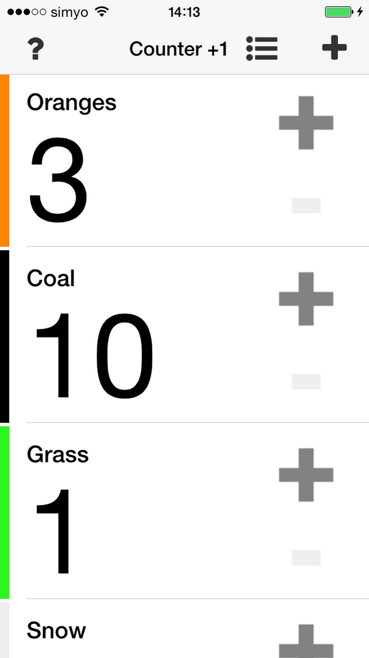 +1 Counter Simple and reliable counter application: Completely free No ads Unlimited counters Colour-coding Display several counters on screen Change counter order Clean and simple design Download for free now: